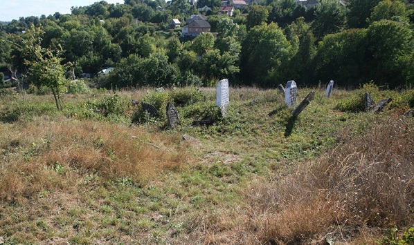 1. По периметру некрополя просматриваются следы мощных валов, никакого отношения к структуре кладбища не имеющих. В частности, между первой и второй их линиями хорошо просматривается ров (окоп), которым евреи традиционно окапывали свои кладбища — отсюда их украинское название «окопысько». Этот ров в разы уже и мельче старых рвов на территории самого кладбища.